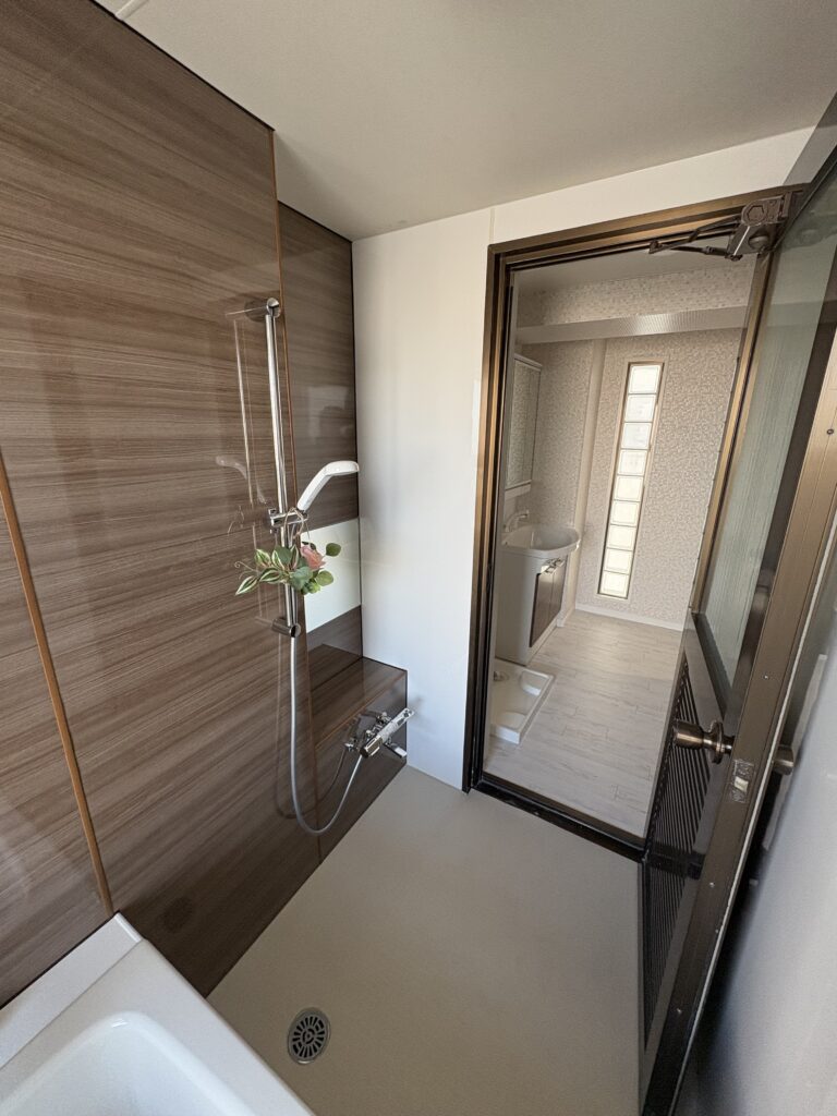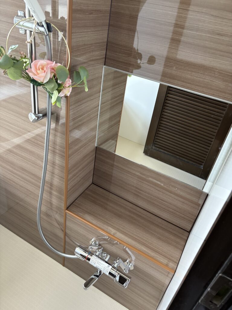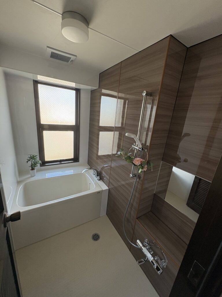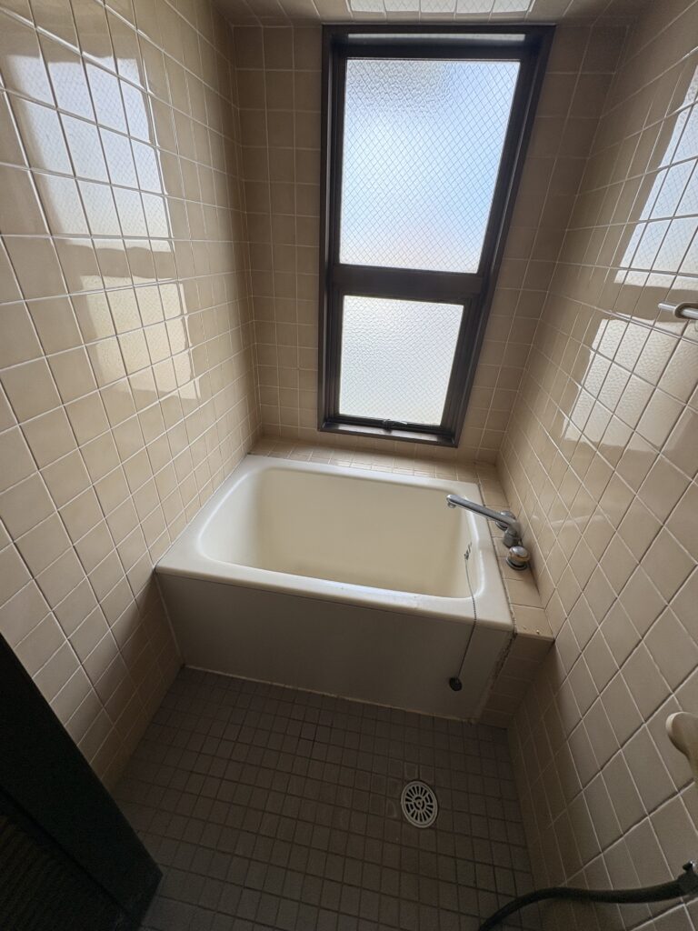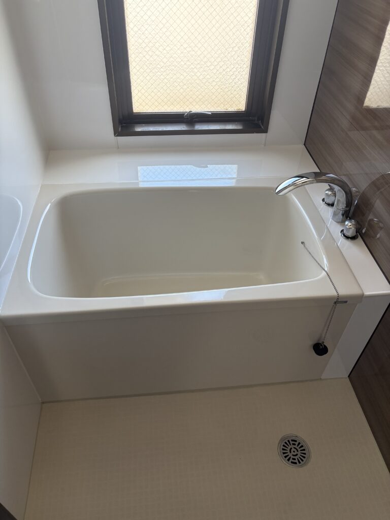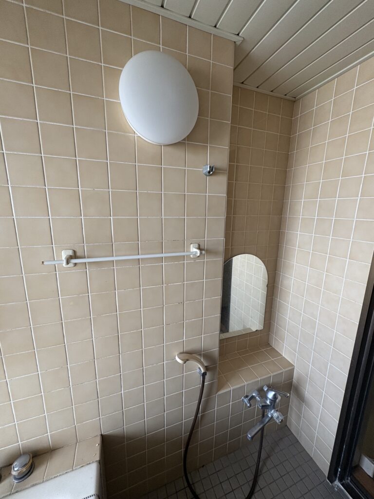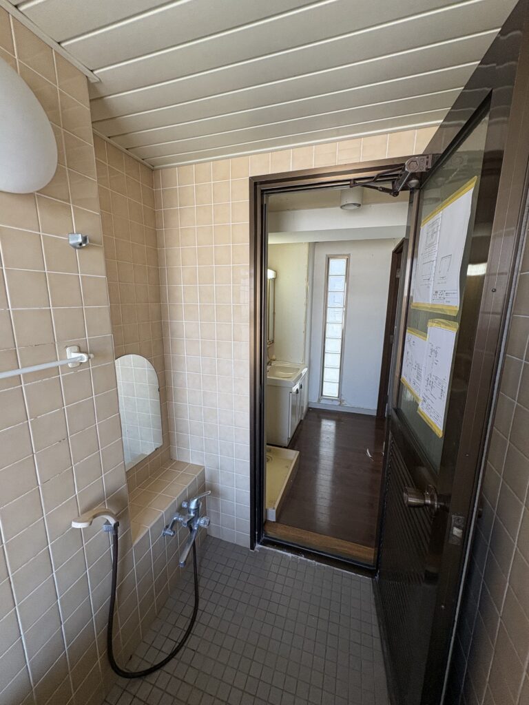 before タイル貼りの在来工法浴室をリフォームさせて頂きました。浴槽と水栓は新品に交換。天井と壁はAICAのセラール バスルーム用パネルは貼りユニットバス風に、床は水はけ、防滑性に優れた浴室用のビニル床シートを施工しました。 AFTER 次